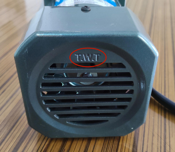 3.电机外壳凸出处下缘也有T.W.T的商标