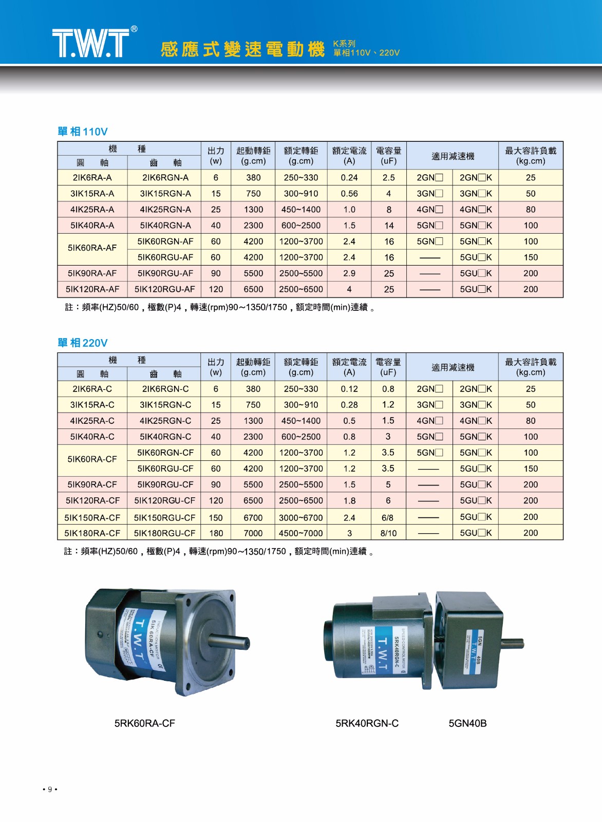 规格: 感应式变速电动机 可逆式变速电动机 刹车加变速马达
